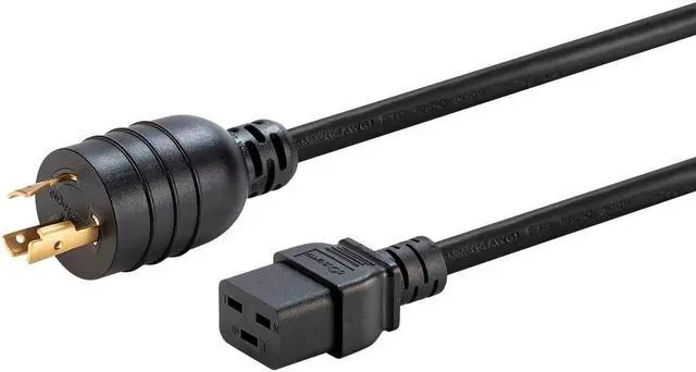 Connect network servers and other peripherals that require heavier-gauge cabling with a PDU, UPS, or other AC power source with a NEMA L6-20R locking outlet. Locking plugs have the pins arrayed in a circular manner and is inserted and twisted to lock in place. This heavy-duty cable features a female IEC 60320 C19 connector on one end and a male NEMA L6-20P connector on the other end. It features 12 AWG conductors suitable for high power connections that require a higher-rated, heavier-gauge cable. Simply mate the female C19 connector with the male C20 connector on your device or power adapter, then plug the NEMA connector into a nearby UPS or other AC power source.
