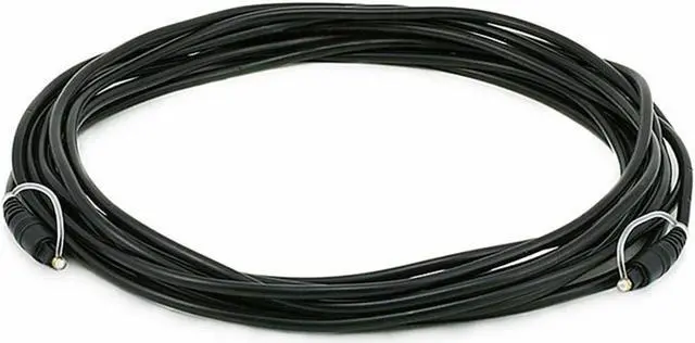 Experience superb sonic clarity and accurate musical reproduction with this S/PDIF (Toslink) Digital Optical Audio Cable from Monoprice! The Sony/Philips Digital Interface Format provides for a Digital Optical Audio signal, commonly referred to as Toslink. Toslink allows for the distribution of uncompressed 2-channel PCM audio or compressed multichannel audio, such as DTS or Dolby 5.1 or 7.1. Being an optical signal, Toslink is immune to problems that can plague electrical signals, such as crosstalk, magnetic interference, or radio frequency interference. This cable features a full-sized Toslink connector on each end, with molded connector heads and strain-relief boots.