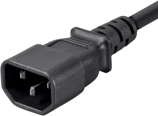 Extend the reach of your AC powered device using this AC power extension cord to energize equipment from a distant power outlet. This cable features a standard, grounded IEC 60320 C14 plug on one end and an IEC 60320 C13 receptacle on the other. IEC 60320 C14 to C13 power cords are commonly used between rack mounted equipment and the PDU in a data cabinet.