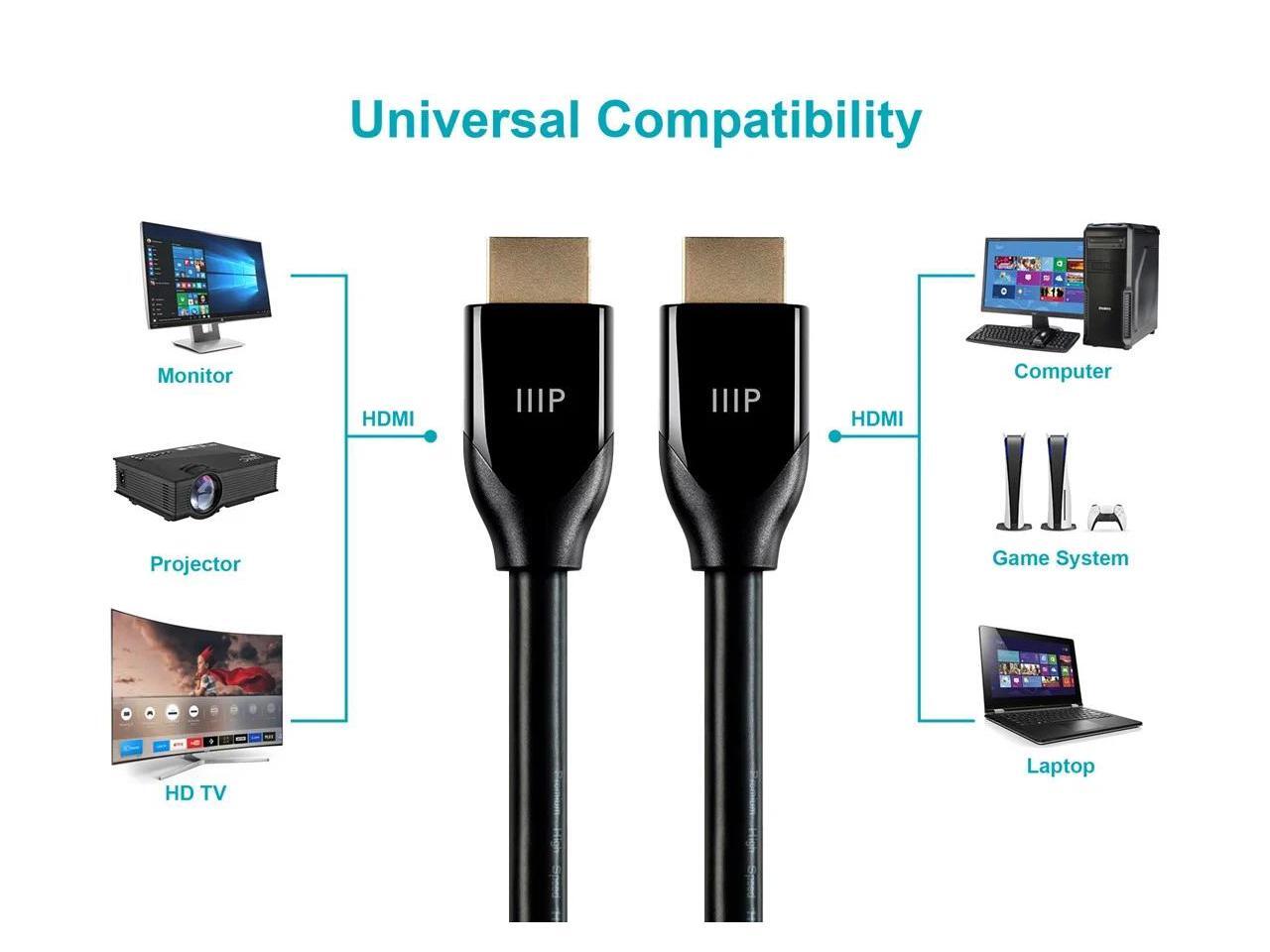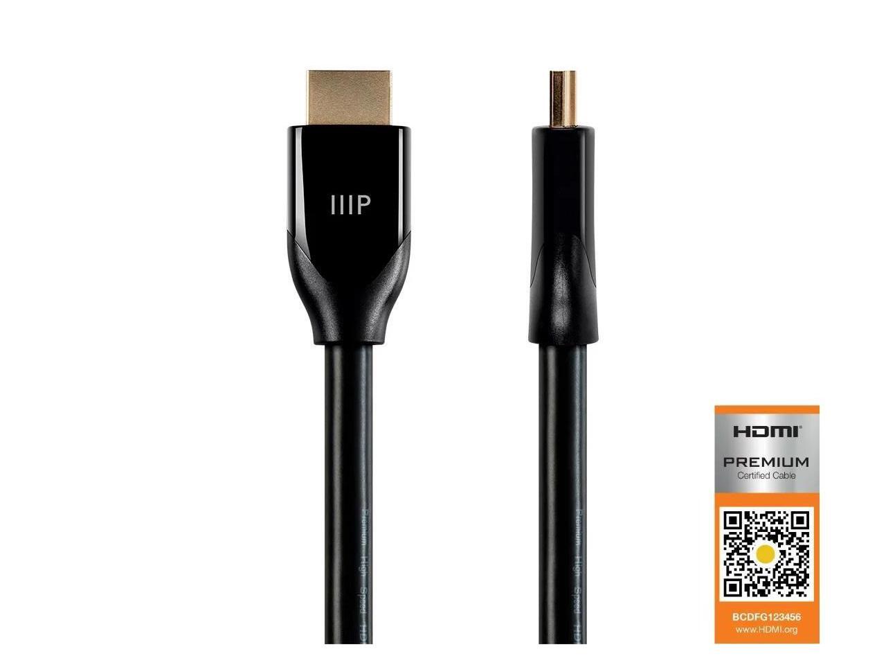 Monoprice HDMI Cable - 25 Feet - Black | Certified Premium, High Speed, 4K@60Hz, HDR, 18Gbps, 24AWG, YUV 4:4:4, Compatible with UHD TV and More
