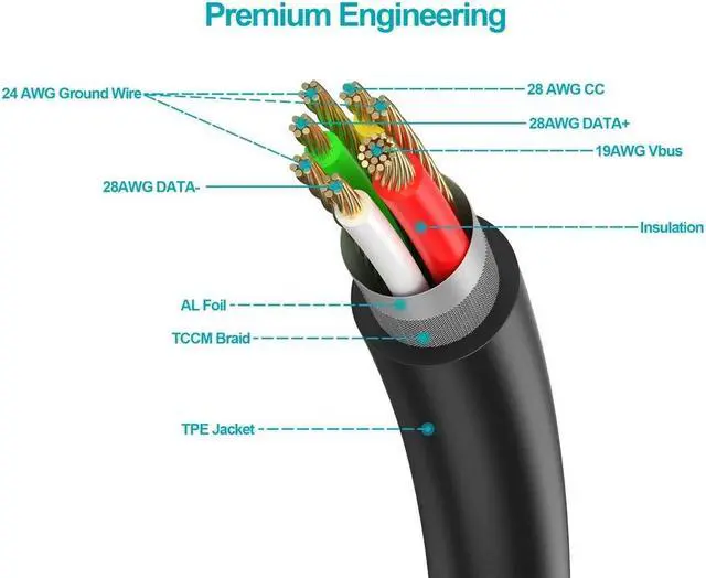 This cable can deliver up to 5 amps of charging power, providing for fast charging of phones, tablets, and other mobile devices.