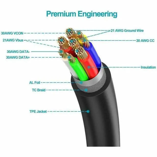 This cable can deliver up to 5 amps of charging power, providing for fast charging of phones, tablets, and other mobile devices.