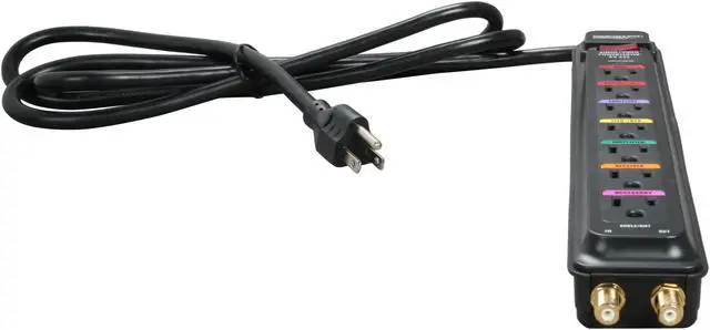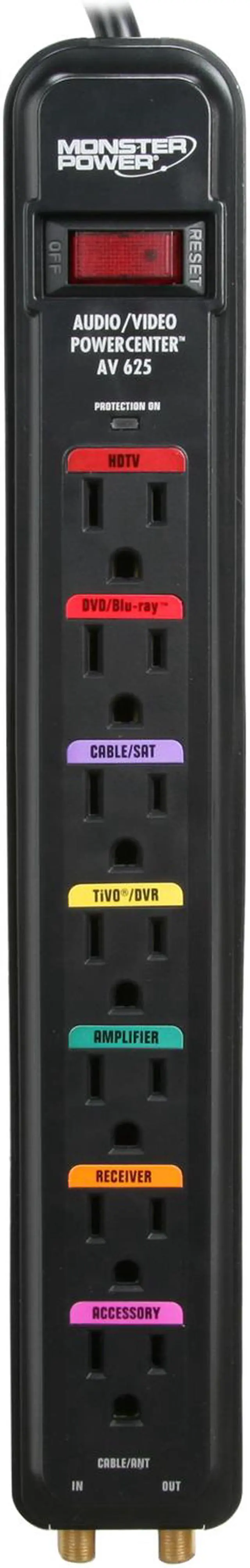 ? Model No. AV 625;? 7 outlets;? 1,080 Joules;? Dual Mode Plus(TM) power protection automatically disconnects from dangerous power conditions & sounds an alarm;? Ceramic-encased MOVs reduce risk of fire caused by power surges;? 1 pair low-loss protected coaxial connections for cable TV/antenna;? Lifetime product warranty;? $300,000 connected equipment warranty / LIFETIME
