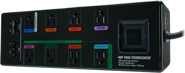 Exclusive HD Clean PowerThe HDP 900G features proprietary HD Clean Power filtering that is precision-engineered to remove electrical noise and interference. This protects the delicate circuitry inside your HDTV and other electronics from unnecessary wear. HD Clean Power maximizes your equipment’s lifespan and ensures the best possible picture and sound performance.