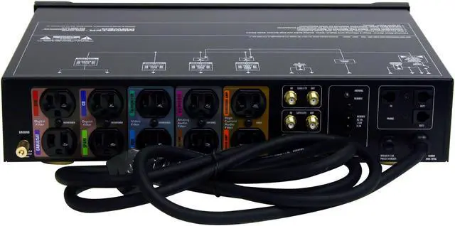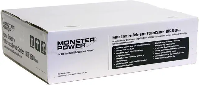 | Features | Component—width chassis suitable for rackmounting or stacking (rack "ears" included). Monster Clean Power™ Stage 3 filters optimized for digital, high current audio, and video applications. Protects coax lines used with cable TV, DBS, and DSS equipment from surge pulses. Ultra—high 2775 joule rating provides full capacity surge protection. 12 volt trigger input for remote turn—on of switched outlets. Dual Mode Protection provides audible and visual alarm for maximum protection and performance. High sensitivity volt meter measures incoming voltage and shows AC power fluctuations. |