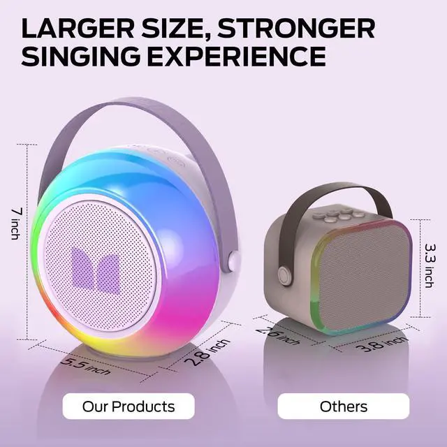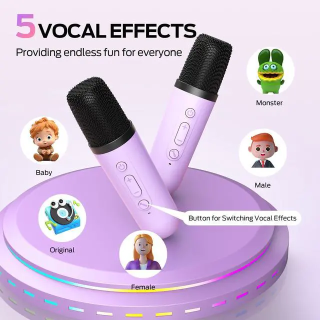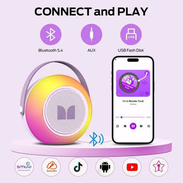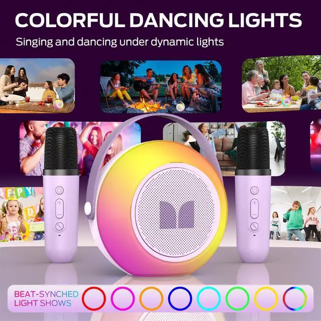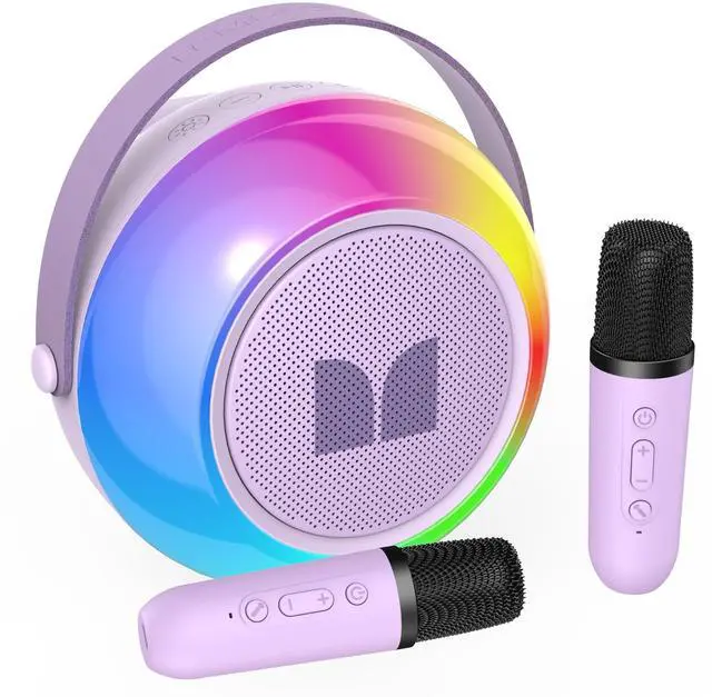 Monster Mini Karaoke Machine for Kids Adults, Portable Bluetooth Speakers with 2 Wireless Microphones and Lights, Christmas Birthday Gifts Toys for Girls Boys 4, 5, 6, 7, 8, 9, 10, 12+ Toddler