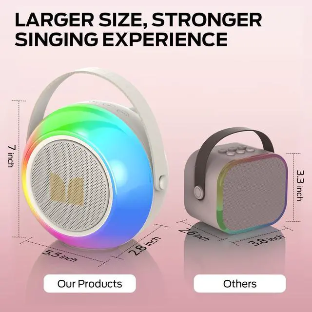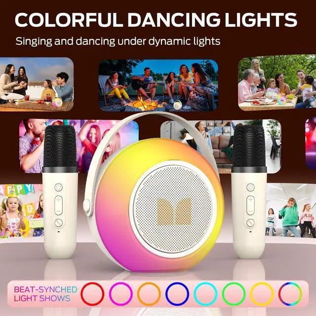 8 COLORFUL LIGHTS : Monster Portable karaoke machine equipped with 8 light effect LED lights and dancing to the rhythm of music, giving you an immersive karaoke experience, for birthday parties, outdoor activities, family gatherings to create a good atmosphere.