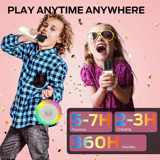 Mini Karaoke Machine for Kids Adults, Portable Bluetooth Speakers with 2 Wireless Microphones and Lights, Christmas Birthday Gifts Toys for Girls Boys 4, 5, 6, 7, 8, 9, 10, 12+ Toddler