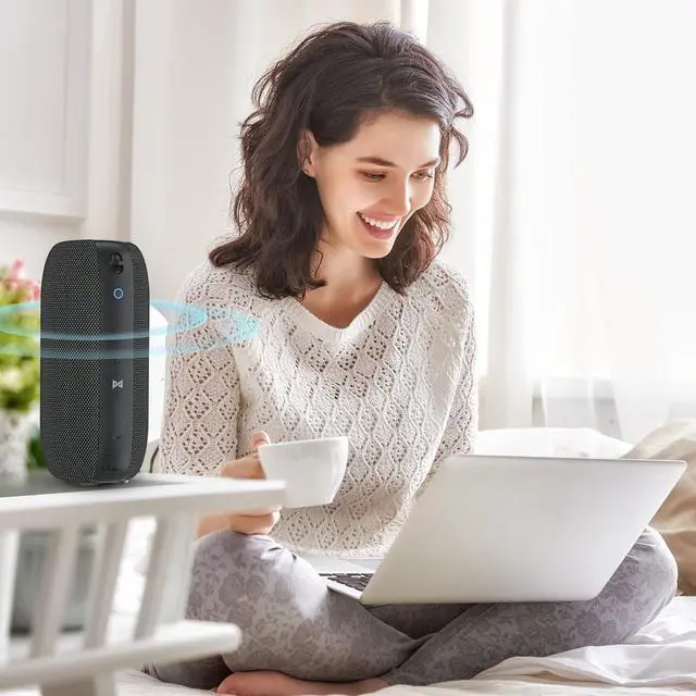 Stereo sound with full bass,the speaker delivers immersive sound with rich bass, mids and highs,and dynamic sound, at the maximum volume, it’s in the same way as the live concert performance. True 360°Stereo Sound speakers bluetooth wireless.