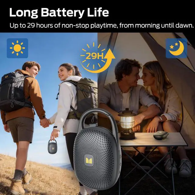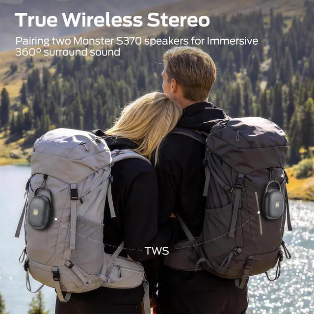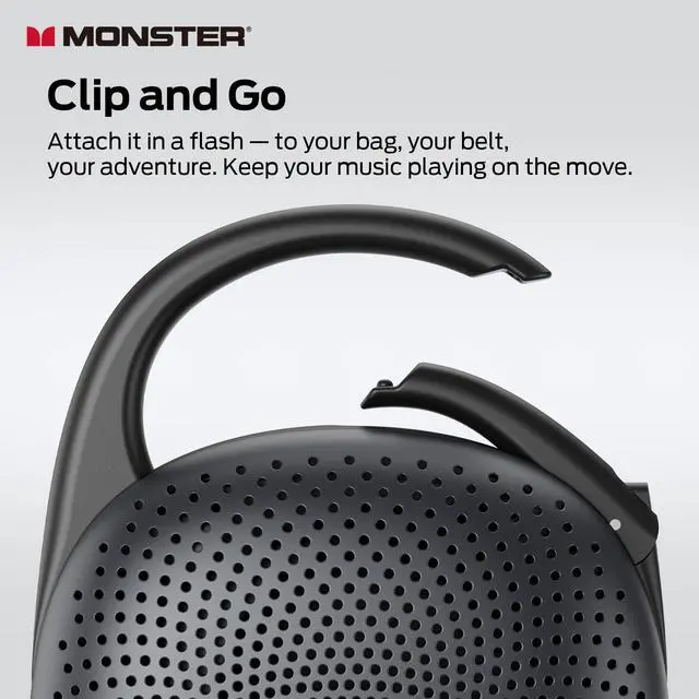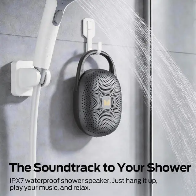 The integrated carabiner hooks securely to your bag, chair, while the full waterproof build means you can stop worrying and start the party. Drop it into pool? Just rinse it off.