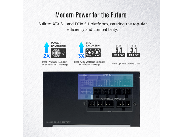 - Compatible with Latest Platforms: ATX 3.1 & PCIe 5.1 ready, featuring a 12V-2x6 cable.