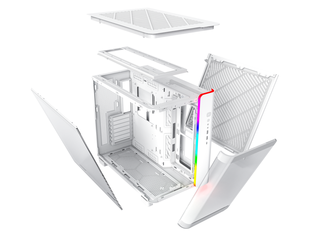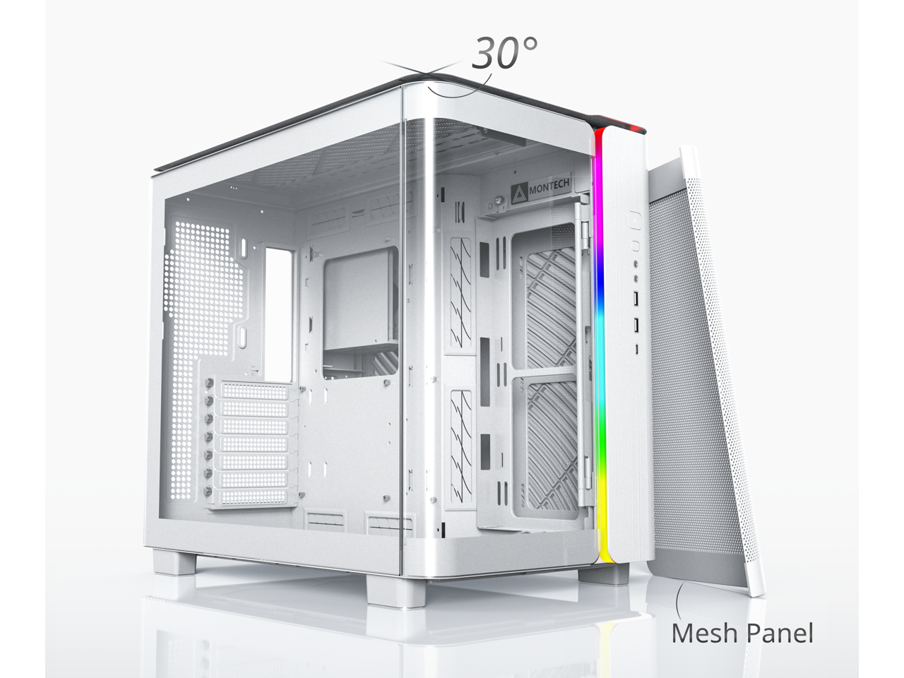 MONTECH, KING 95 Dual-Chamber ATX Mid-Tower PC Gaming Case, High-Airflow, Toolless Panels, Sturdy Curved Tempered Glass Front and Side Panel, ARGB Lighting, White