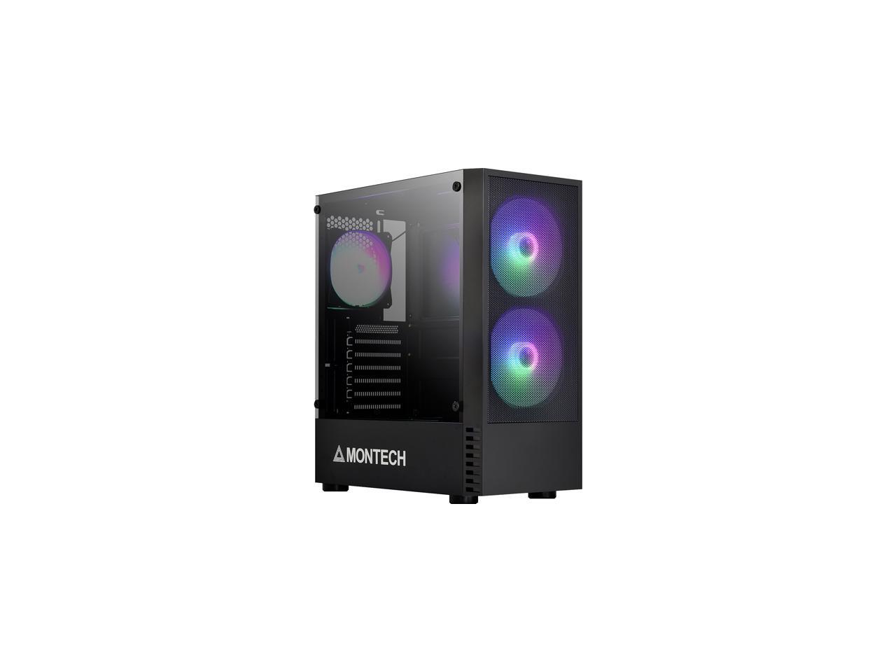 Montech X2 MESH Black ATX Mid-Tower Case/High Airflow, Fine Mesh Front Panel, Full Glass Side Panel