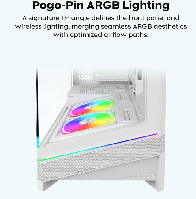 - The Golden 13° Angle for Great Performance: the sunk-in power button, fan layout, front panel, and ambient lighting are all defined by a 13° angle, opening up new possibilities for airflow direction.