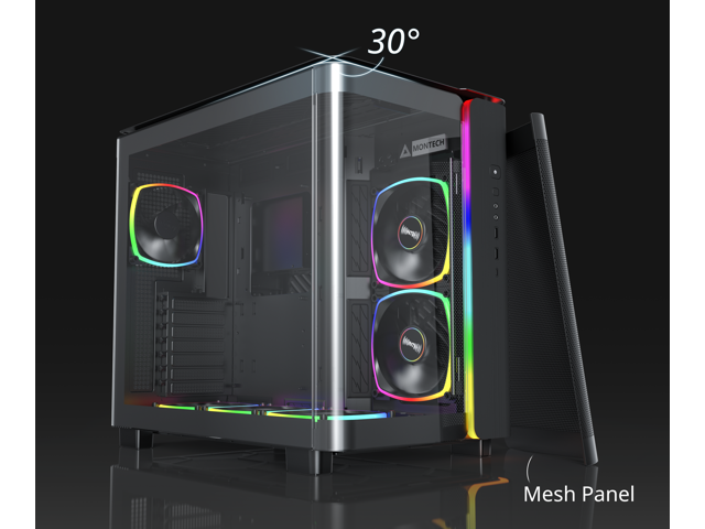 MONTECH, KING 95 PRO Dual-Chamber ATX Mid-Tower PC Gaming Case, High-Airflow, Toolless Panels, Sturdy Curved Tempered Glass Front, Six ARGB PWM Fan Pre-installed with Fan Hub, Black