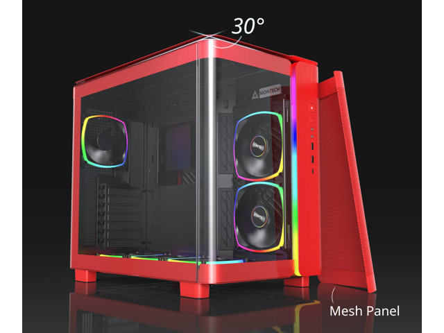 MONTECH, KING 95 PRO Dual-Chamber ATX Mid-Tower PC Gaming Case, High-Airflow, Toolless Panels, Sturdy Curved Tempered Glass Front, Six ARGB PWM Fan Pre-installed with Fan Hub, Red