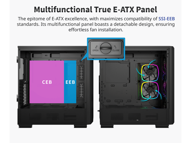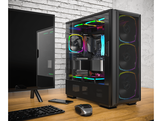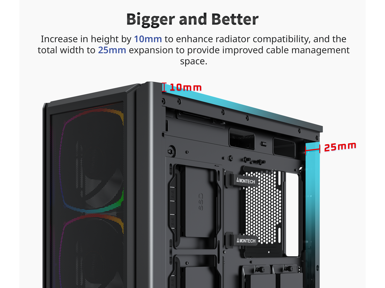 Montech Sky Two GX, E-ATX Mid Tower Case, High Airflow Performance, 3X 140mm PWM ARGB Fans Pre-Installed, Tempered Glass Side Panel, Metal Mesh Front, Type C, Support 4090 GPUs - Black