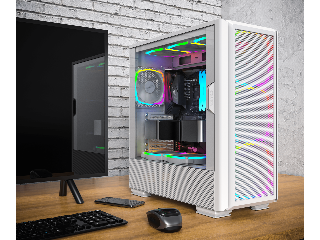 Montech Sky Two GX, E-ATX Mid Tower Case, High Airflow Performance, 3X 140mm PWM ARGB Fans Pre-Installed, Tempered Glass Side Panel, Metal Mesh Front, Type C, Support 4090 GPUs - White