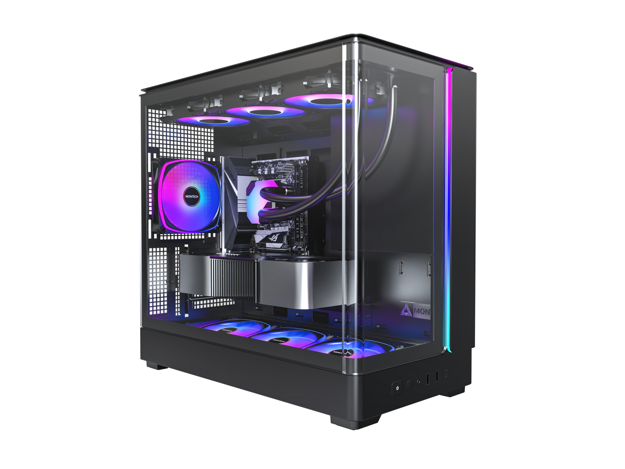 MONTECH KING 15 PRO Micro-ATX PC Case, Curved Panoramic Glass, Chimney Airflow, 360mm Radiator Support, Compact Build for High-Performance Systems, 4 ARGB PWM Fan Pre-Installed with Fan Hub, Black