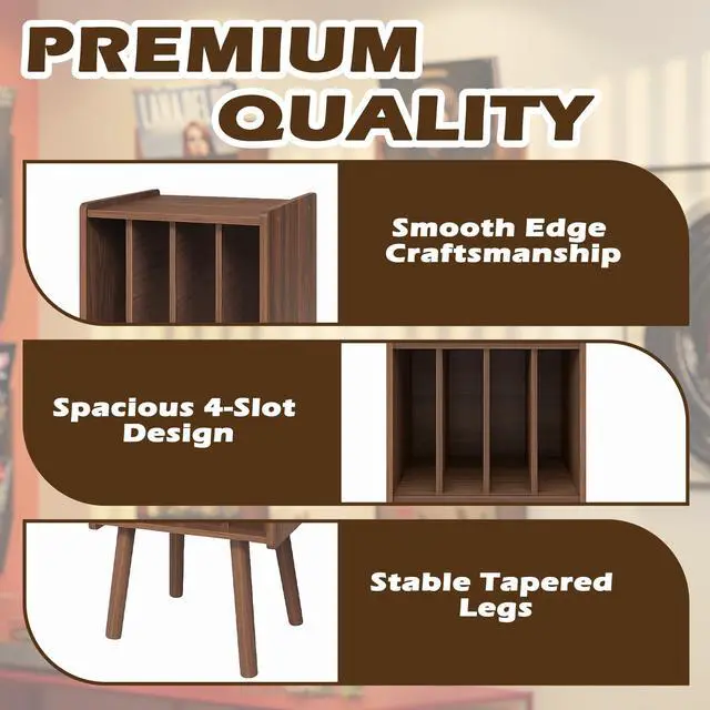 Our stand is designed to hold your record player and organize your vinyl collection in one compact, stylish unit.