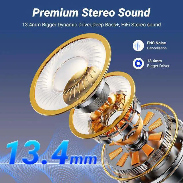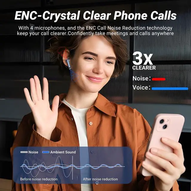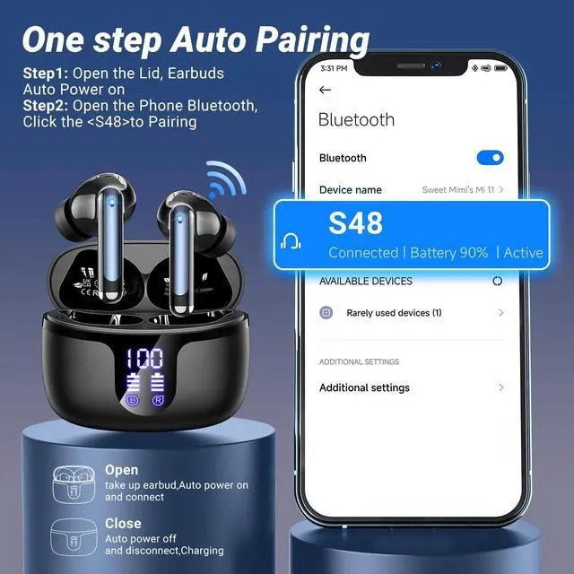 HiFi Stereo and ENC Noise ReductionThe Monyhigh S48 wireless earbuds, with advanced HiFi stereo sound, bring crisp high notes, rich mid notes, and deep bass, creating an immersive music atmosphere and showcasing studio-level sound quality. These Bluetooth Earbuds feature an upgraded ENC microphone that reduces 95% of background noise, ensuring your calls are loud and clear even on busy streets or busesperfect for clear communication through your bluetooth headphones.