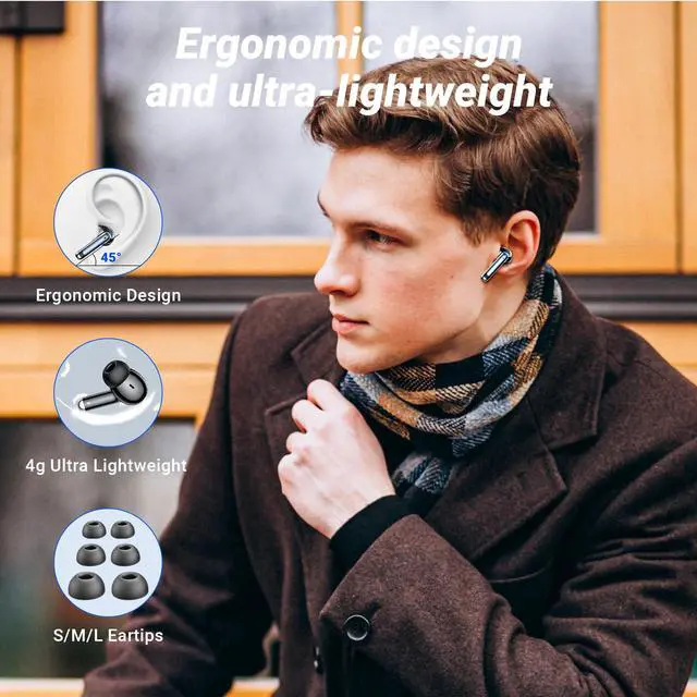 Ergonomic Design & 3 Ear Tip SizesDesigned for all-day comfort, the Monyhigh S48 ear buds wireless bluetooth earbuds feature an ergonomic shape that fits the ear canal snugly. Three sizes (S/M/L) of soft silicone ear tips, combined with pressure-distribution technology, ensure a secure and comfortable fit for every ear shapepreventing fatigue and slippage even after 6+ hours of use.