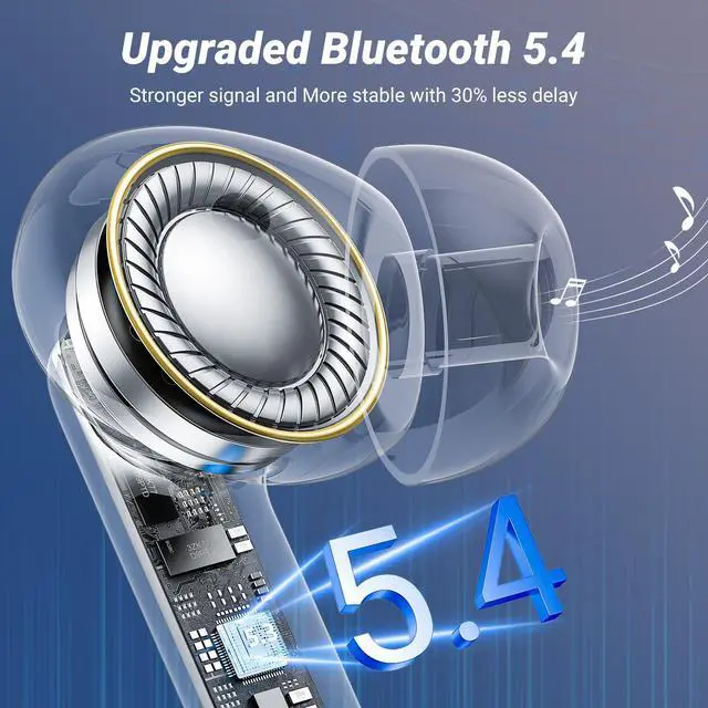 Bluetooth 5.4 & Wide CompatibilityThese ear buds utilize Bluetooth 5.4 for a stable 15m connection with low latency (40ms). Featuring one-step pairing, these wireless earbuds connect instantly out of the box and offer extensive device compatibility, working seamlessly with computers, smartphones, laptops, and more. As versatile earphones with IPX7 waterproofing, these earbuds wireless bluetooth withstand sweat and rain, making them a reliable choice for running, gym sessions, and daily use.