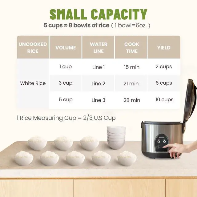 [CAPACITY]:Perfect cooking up to 5-cup uncooked (10-cup cooked) capacity, perfect for individual, growing family, parties or any other activities.