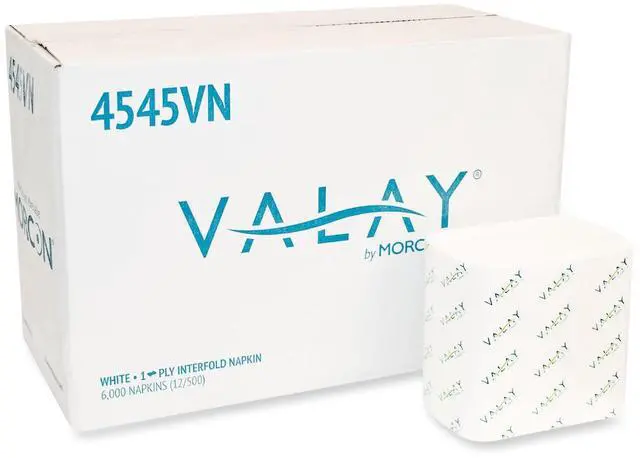 Valay Interfolded Napkins 1-Ply White 6.5 x 8.25 6000/Carton 4545VN