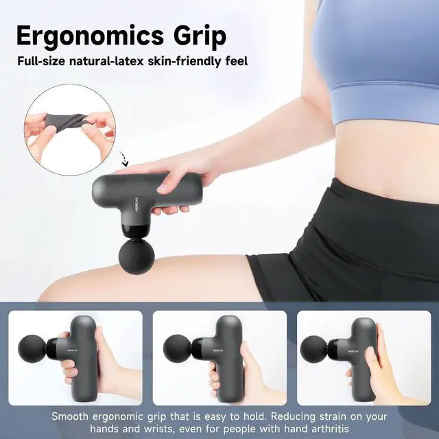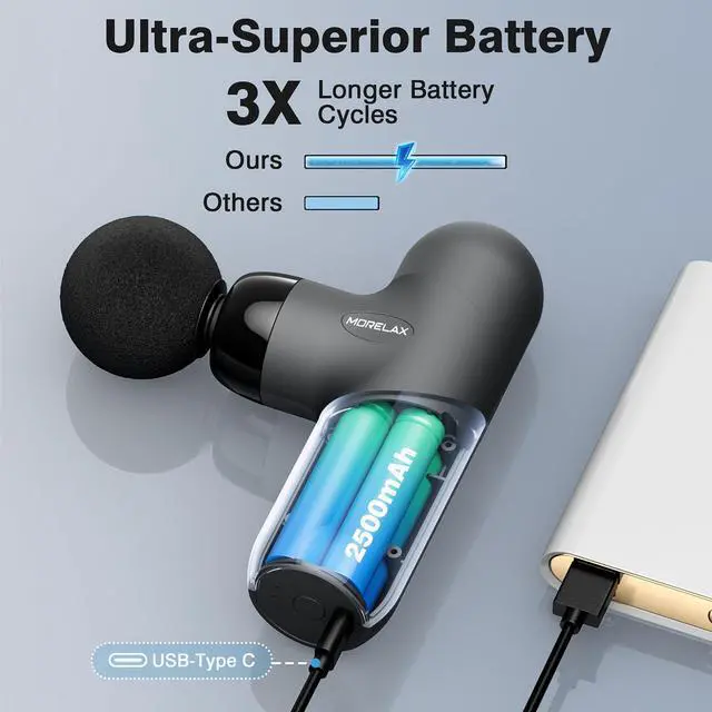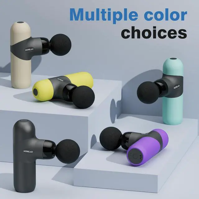 The Morelax Mini Massage Gun Deep Tissue is an innovative and portable percussion massager that offers relief from muscle soreness, stiffness and pain, through deep tissue massage therapy, with the convenience of being handheld, coupled with its 6 interchangeable massage heads and 5 speeds, it allows for a customizable massage experience to target specific areas of the body, making it a great tool for athletes, fitness enthusiasts, or anyone looking for a drug-free alternative to pain management, and as a gift for him/her/ mother/father.The Mini Massage Gun Deep Tissue works by delivering rapid vibrations to the muscles, which helps to promote blood flow, reduce inflammation and alleviate tightness. It typically comes with multiple attachments or massage heads that can be used to target different areas of the body.This Morelax Mini Massage Gun Deep Tissue is a handheld percussion massager that uses deep tissue massage therapy to provide relief for muscle soreness, stiffness and pain. It's designed to be portable and compact, making it easy to use on-the-go.To use this Mini Massage Gun Deep Tissue, please simply select the appropriate massage head for the area you want to target, and turn on the device. Start with the lowest speed setting and gradually increase the intensity as needed. You can use the massage gun for several minutes at a time, several times per day.Select us,pick up the more relax soluction for you!