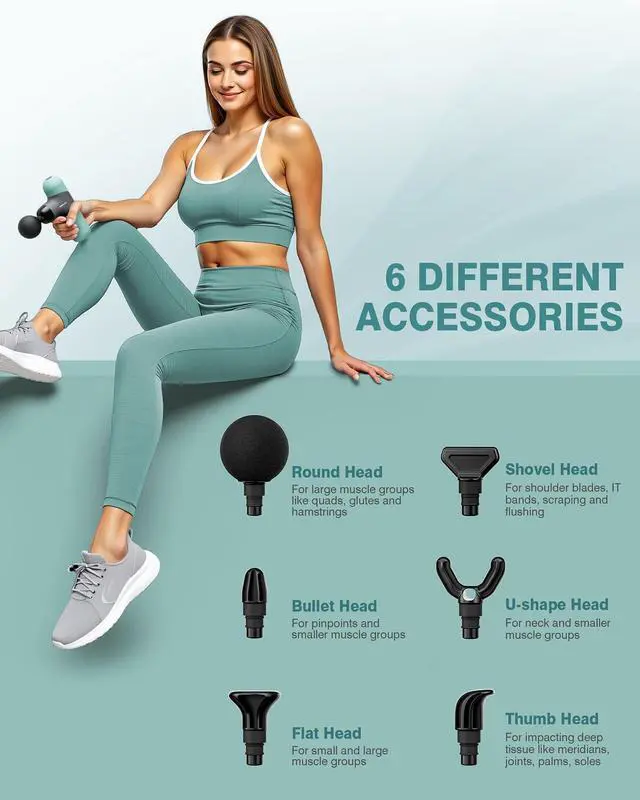 Versatile Deep Tissue Relief : Equipped with 6 interchangeable massage heads (Bullet, Flat, Fork, etc.) and 4 adjustable speed levels to target muscles, joints, and pressure points for recovery after workouts, office fatigue, or chronic pain
