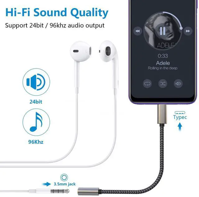 Enhanced Durability: The usb c headphone adapter combined nylon braided jacket with reinforced wire joints, the 3.5mm to usb c adapter is robust enough to withstand any twist, tug, and tangle. High-quality materials not only enhanced durability, but also makes it beautiful and good touch feeling