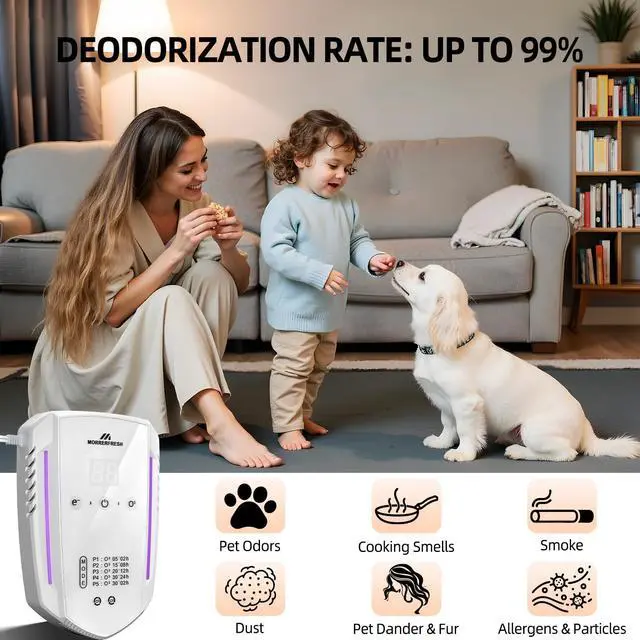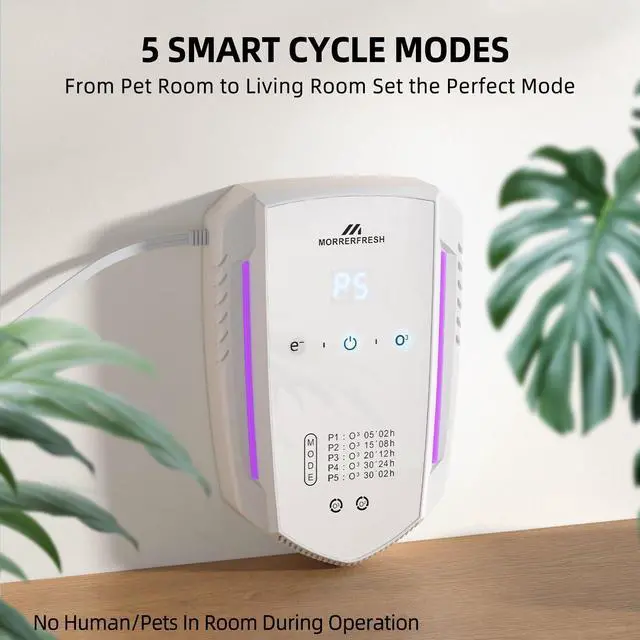 It neutralizes odors at the molecular level with ozone, doesn't just cover them. Choose mode by odor strength (P1–P5), use in empty room, then ventilate. Use weekly for best results.