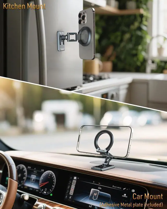 --Dual-Sided MagSafe Integration:compatible stand with magnetic surfaces adheres instantly to any ferromagnetic surface (e.g., refrigerators).