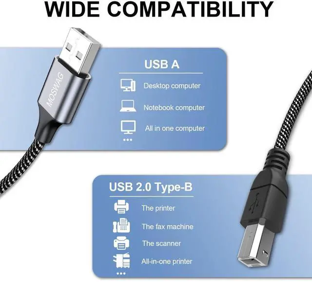 The well made wire itself ensured this usb to usb b cable can stable and No loss transmit the audio signal & Minimize the interference.Supports USB 2.0 speed data transfer/syncing up to 480 Mbps(=60MBps), faster and more secure than the connection over Wi-Fi.