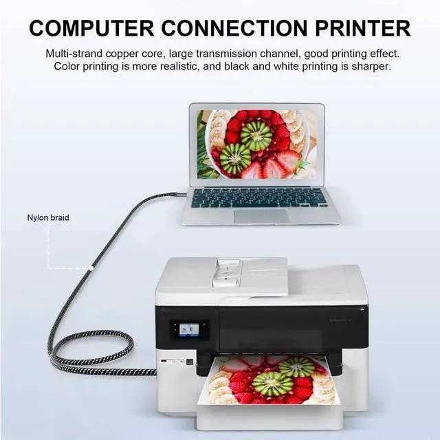 This USB printer cable adopt 24strands high density braided wire,and nylon braided jacket wraps the cable to make it is not easily broken and cracked.And the printer calbe not only strong but flexible plug and unplug.