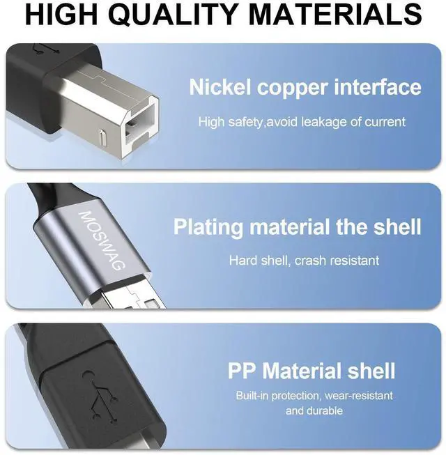 This printer cable adopt Nickel plating interface,high quality materials,you can use them plug and unplug more than 10000+ times