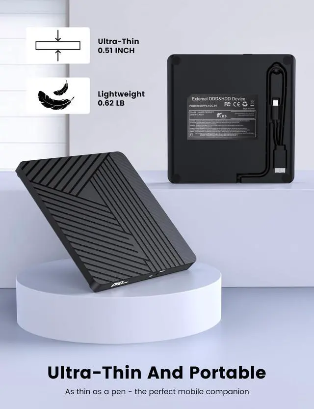 Plug and Play: No need to install any drivers. It automatically recognizes CD/DVD discs, enabling easy reading, writing, and ripping.