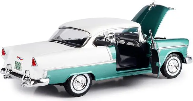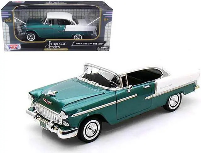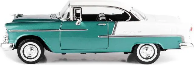 Brand new 1/18 scale diecast car model of 1955 Chevrolet Bel Air Hard Top Green Metallic and White die cast model car by Motormax.