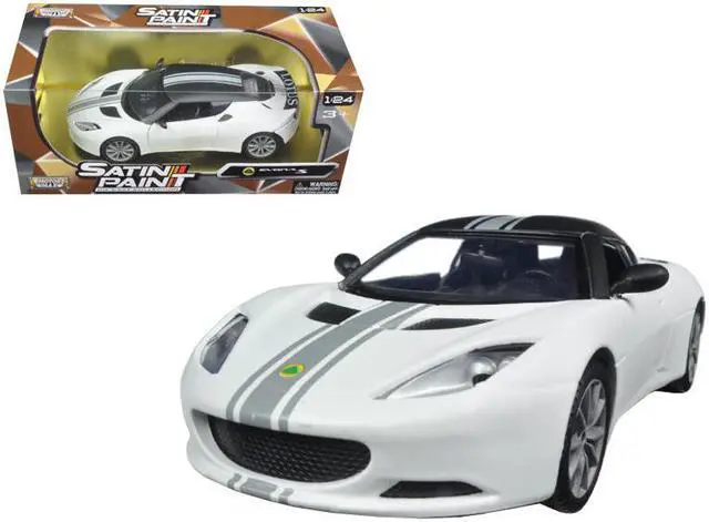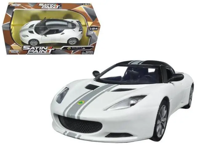 Brand new 1/24 scale diecast car model of Lotus Evora S Matt White with Black Top and Gray Stripes "Satin Paint" Series die cast model car by Motormax.