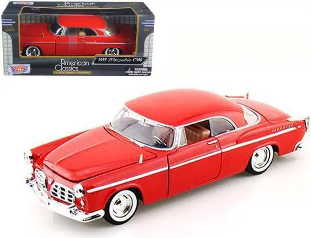 Brand new 1/24 scale diecast car model of 1955 Chrysler C300 Red die cast model car by Motormax.