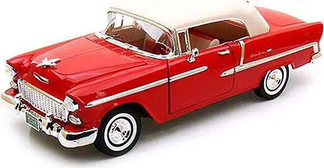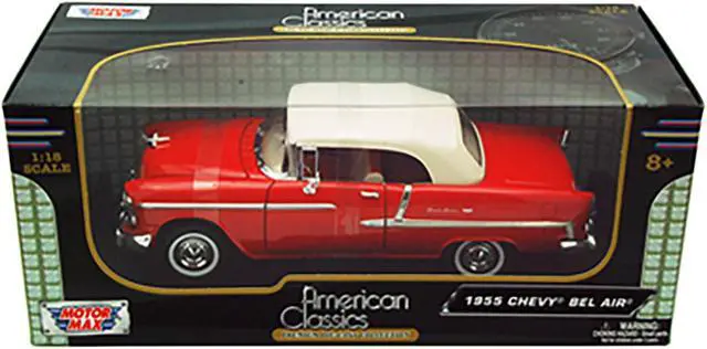 Brand new 1:18 scale diecast car model of 1955 Chevrolet Bel Air Convertible Soft Top Red die cast car model by Motormax.
