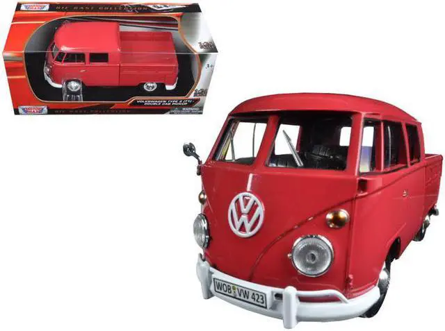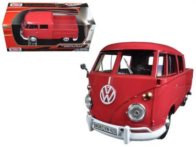 Brand new 1:24 scale diecast model of Volkswagen Type 2 (T1) Double Cab Pickup Truck Wax Red die cast model by Motormax.