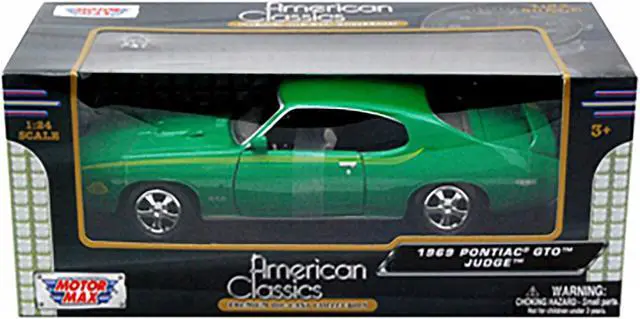 Brand new 1/24 scale diecast car model of 1969 Pontiac GTO Judge Green with Stripes die cast model car by Motormax.