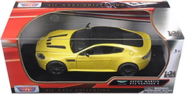 Brand new 1:24 scale diecast model car of Aston Martin Vantage S V12 Yellow die cast car model by Motormax.