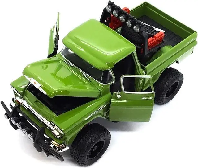 Brand new 1:24 scale diecast model of 1958 Chevrolet Apache Fleetside Pickup Truck Off Road Green die cast by Motormax.