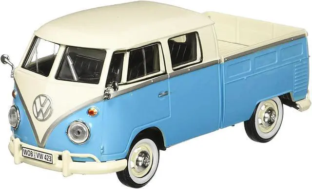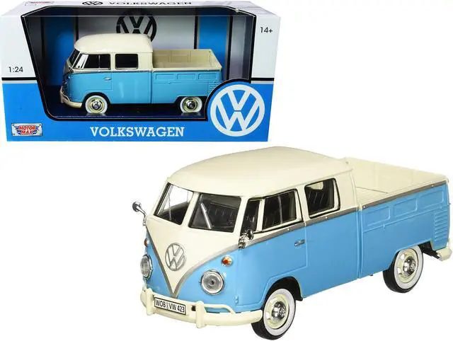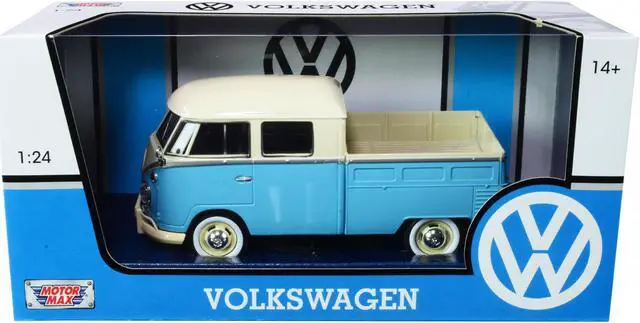 Brand new 1/24 scale diecast car model of Volkswagen Type 2 (T1) Double Cab Pickup Truck Light Blue and Cream die cast model car by Motormax.
