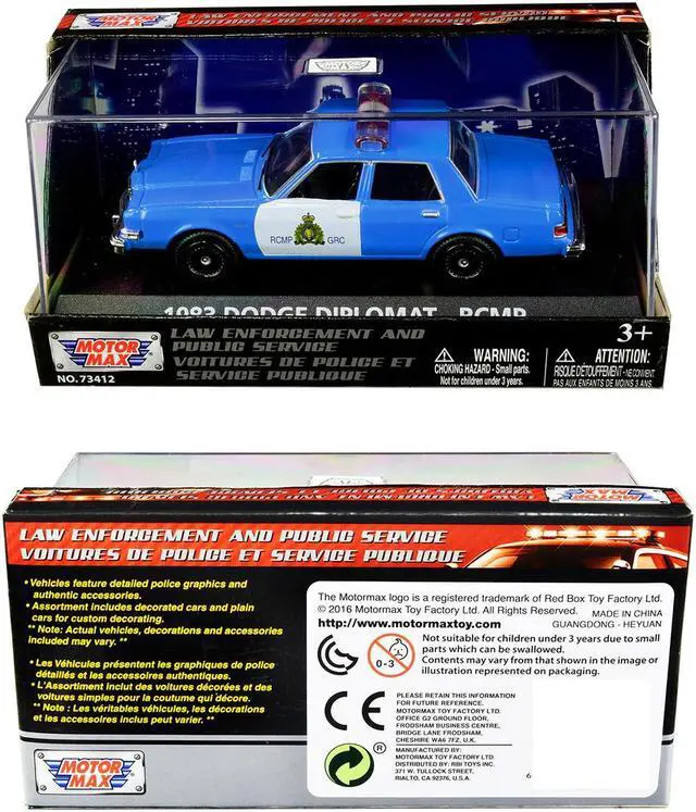Brand new 1/43 scale diecast car model of 1983 Dodge Diplomat "Royal Canadian Mounted Police" (RCMP) Light Blue and White die cast model car by Motormax.