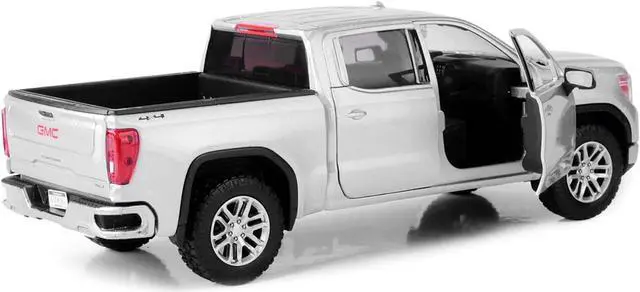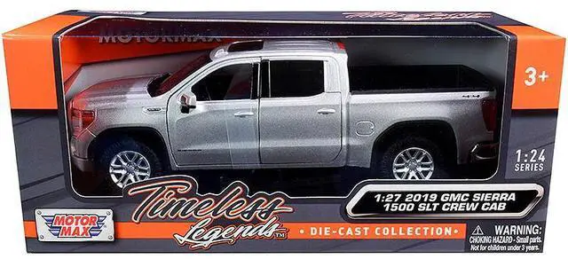 Brand new 1/24-1/27 scale diecast car model of 2019 GMC Sierra 1500 SLT Crew Cab Pickup Truck Silver Metallic die cast model car by Motormax.