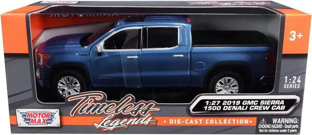 Brand new 1/24-1/27 scale diecast car model of 2019 GMC Sierra 1500 Denali Crew Cab Pickup Truck Blue Metallic die cast model car by Motormax.